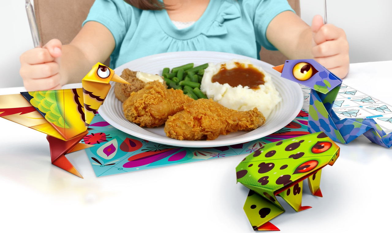 Давнє мистецтво оригамі спрямоване на розвиток творчих здібностей вашої дитини. Побалуйте його цією грою й під час обіднього столу та дайте йому можливість насолодитися оригамі зоопарком після десерту. З одного листа паперу для столового приладдя можна скласти 4 конструкції (тварини). Інтерактивна розвага розрахована на різні рівні складності, тож ви легко можете почати з найпростіших фігурок і дойти до рівня «профі». Набір складається з 48 аркушів, інструкція перфорована, що полегшить використання, малюнки нанесені безпечними водними фарбами.